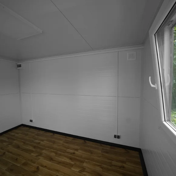 Contrairement aux conteneurs maritimes traditionnels, notre studio Helsinki arbore un revêtement en acier RAL 7016, avec des panneaux montés en surface lui conférant un look moderne et luxueux. Les panneaux, au fini bois foncé, permettent une intégration harmonieuse avec votre Modulaire ou d’ajouter une touche d’élégance à votre entreprise.